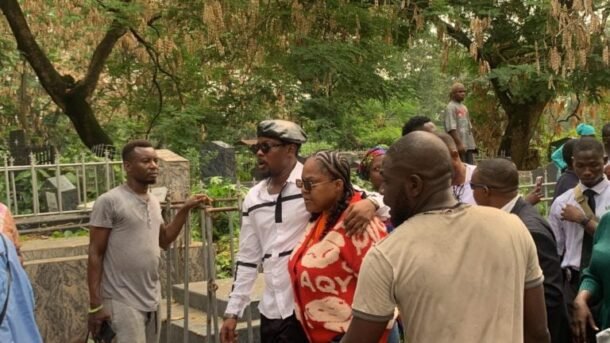 The burial ceremony and interment took place on Friday at the Atan Cemetery in the Yaba area of Lagos. At the graveside, clergymen led prayers and hymns, while family members paid their final respects by sprinkling sand on her coffin.