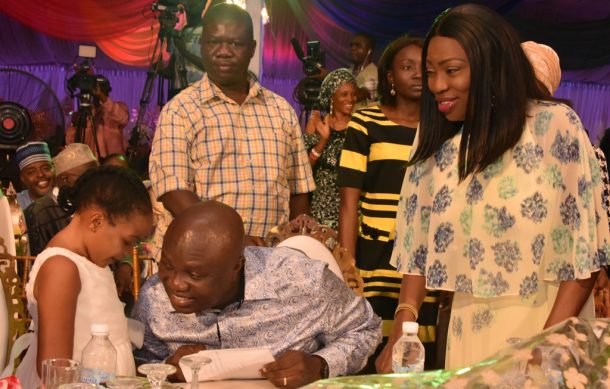 Lagos State Governor, Mr. Akinwunmi Ambode (2nd right), with first Governor of Lagos State, Brig. Gen. Mobolaji Johnson, Rtd. (2nd left); wife of first civilian Governor of Lagos State, Alhaji Abimbola Jaknade (left) and wife of the Governor, Mrs. Bolanle Ambode (right) during a Special Evening of the Arts to commemorate Children’s Day at Lagos House, Alausa, Ikeja, on Sunday, May 27, 2018.Lagos State Governor, Mr. Akinwunmi Ambode (middle), presents a plaque to cultural group, Footprints of David during a Special Evening of the Arts to commemorate Children’s Day at Lagos House, Alausa, Ikeja, on Sunday, May 27, 2018.Lagos State Governor, Mr. Akinwunmi Ambode and his wife, Bolanle, with a cultural group, Footprints of David during a Special Evening of the Arts to commemorate Children’s Day at Lagos House, Alausa, Ikeja, on Sunday, May 27, 2018.Lagos State Governor, Mr. Akinwunmi Ambode (left), with a cultural group, Footprints of David during a Special Evening of the Arts to commemorate Children’s Day at Lagos House, Alausa, Ikeja, on Sunday, May 27, 2018.Lagos State Governor, Mr. Akinwunmi Ambode (middle), interacting with Miss Sikemi Onanuga (left) as his wife, Bolanle (right), watches during a Special Evening of the Arts to commemorate Children’s Day at Lagos House, Alausa, Ikeja, on Sunday, May 27, 2018.Lagos State Governor, Mr. Akinwunmi Ambode (middle), interacting with Miss Sikemi Onanuga (left) as his wife, Bolanle (right), watches during a Special Evening of the Arts to commemorate Children’s Day at Lagos House, Alausa, Ikeja, on Sunday, May 27, 2018.
