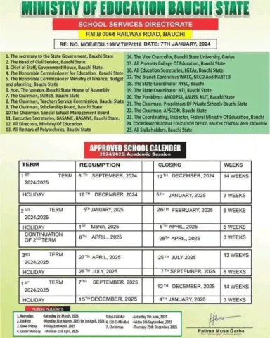 The Bauchi State Government has announced the closure of all schools across the state for five weeks, from March 1 to April 5, to allow students to fully observe the Ramadan fast. This decision aligns with the official school calendar for the 2024-2025 academic year.
