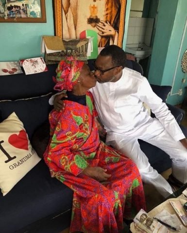 Billionaire Femi Otedola Sings For Mum. Kisses Her (Photo)