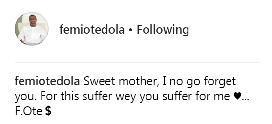 “Sweet mother, I no go forget you. For this suffer wey you suffer for me ♥️… F.Ote�”