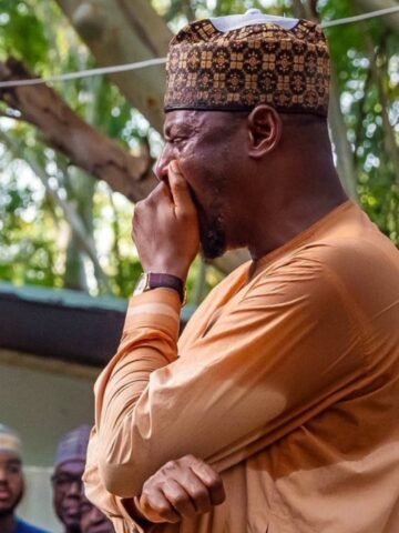 Katsina State Governor Dikko Radda was seen weeping quietly on Tuesday evening as the body of former President Muhammadu Buhari was brought to his final resting place in Daura, Katsina State.