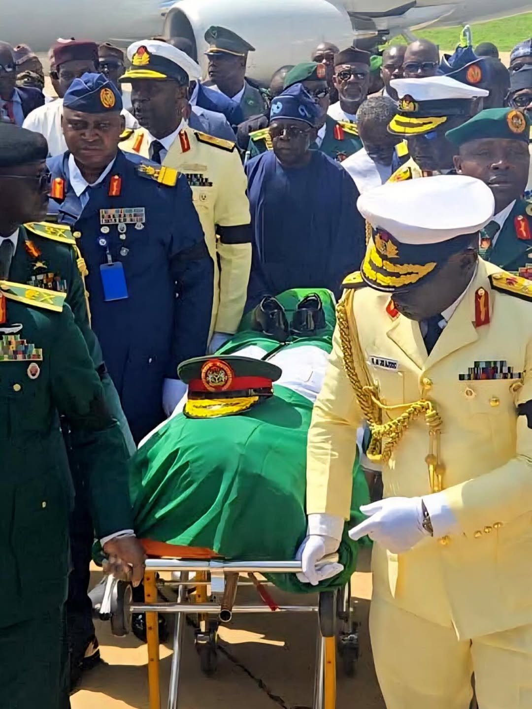 The casket was received by President Bola Tinubu, Vice President Kashim Shettima, Katsina State officials and former Vice President Yemi Osinbajo.