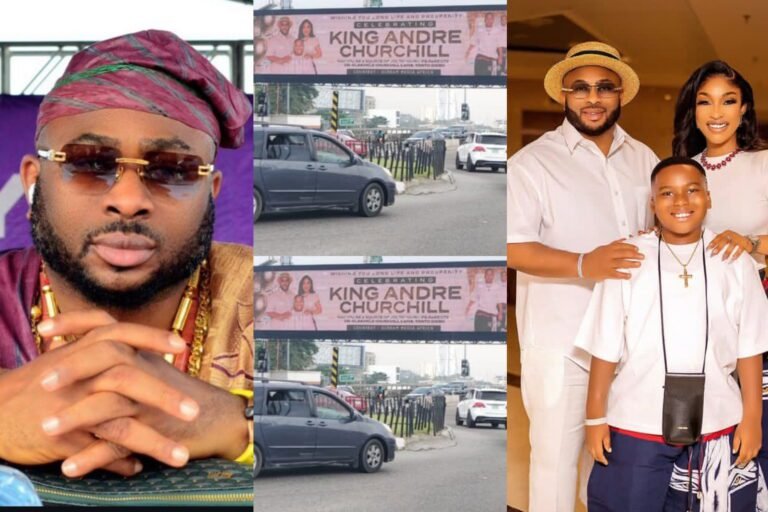 The billboard, which was spotted at the Lekki-Ikoyi Link Bridge, gained attention after Churchill reposted it on his Instagram story while celebrating his first son. The large display, showing the co-parents alongside their child, quickly stirred conversations online.