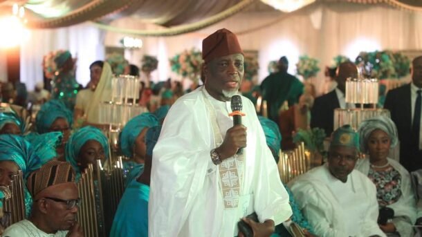 The chairman of the wedding reception, Ambassador Sarafa Tunji Ishola, delivered a thought-provoking address, likening marriage to a journey from “the ocean of fantasy to the ocean of reality.”