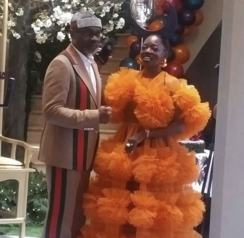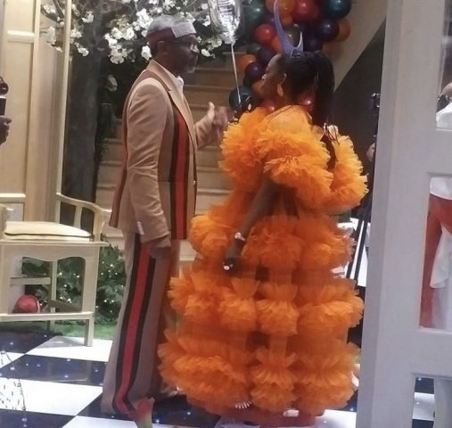 Not only the vehicle attracted much admiration, even the lawmaker and his wife dazzled all their guests with their designer-label attire.Wearing a Gucci outfit, Gbajabiamila was all smiles throughout. His wife, fondly called Sal, wore an orange Rihanna inspired dress and also had the blue version worn at the occasion.