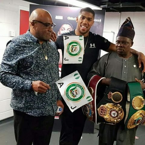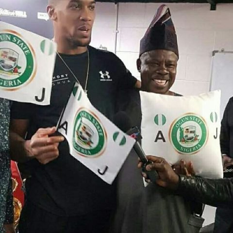 Governor Ibikunle Amosun in Cardiff to watch Anthony Joshua overpower Joseph Parker in the heavyweight Unification fight on Saturday. The British claim Joshua as their own, but Joshua is certainly proud of his Ogun State Nigeria origin.