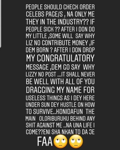 Oh Allah I just told you, let any soul that is born through punani or through knife dragging my innocent name in baseless issue die miserable…look at how I defend them behind them, let things that make them happy turn to things of sorrow for them. .Oh Allah look at how I struggle to survive, how I struggle to feed myself..look at how I mind my business with 100% pure heart, let all the bad minded souls towards me perish like the way pharaoh perished in red sea …All I want is money ,rest of mind , long life , good health and all beautiful things of life for myself and my loyal fans ..biko who will join me to say Amen.”