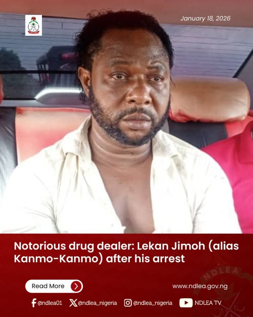 Operatives of the National Drug Law Enforcement Agency (NDLEA) have arrested a long-wanted drug kingpin, Lekan Jimoh, popularly known as Kanmo-Kanmo, more than a decade after his alleged involvement in the killing of three NDLEA officers.