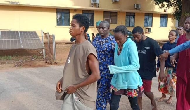 The suspects were identified as Adebayo Joshua Happiness (male), Adebayo Adeniyi (male), Adeniyi Bukola (female), Adeoye Adeola (male), Lawal Aminat (female), and Bulus Peter (male).