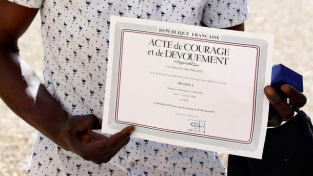 “I had no means to live and no-one to help me,” Mr Gassama told Mr Macron.