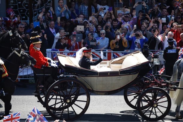 The new Duke and Duchess travelled in the Ascot Landau waving to the thousands of royal fans lining the streets and up the Long Walk, with Ms Markle exclaiming “wow” at their rapturous welcome.As the horse-drawn carriage returned to Windsor Castle ready for a lunchtime reception in the magnificent St George’s Hall, Prince Harry quipped: “I’m ready for a drink now.”